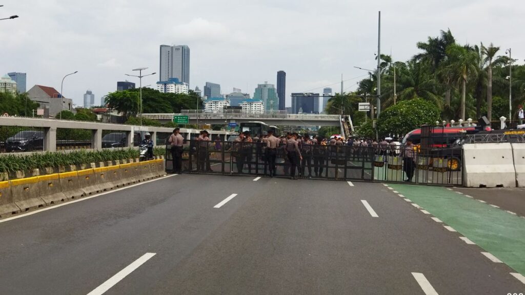Mediapersindonesia.com – JAKARTA. Aparat Kepolisian mulai menutup ruas Jalan Jenderal Gatot Subroto, tepatnya di depan Gedung DPR RI, Jakarta Pusat pada Jumat, 8 Maret sekitar pukul 14.30 WIB.